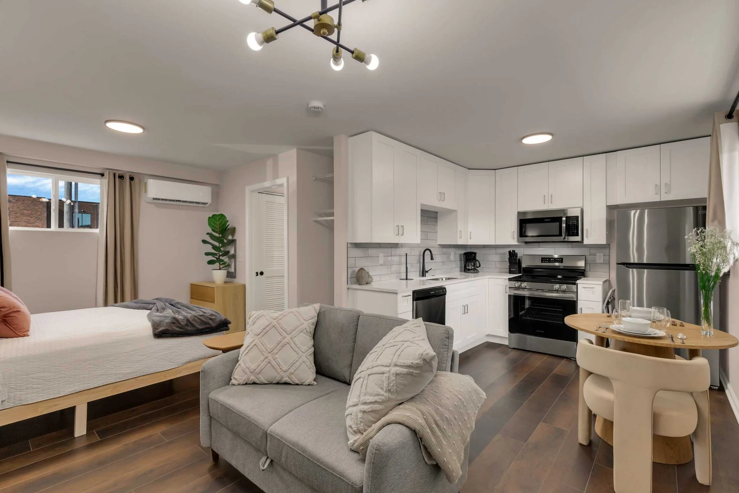 Each Elmhaus studio is furnished and thoughtfully finished with warm materials, calm colors, and the practical details you actually use every day.